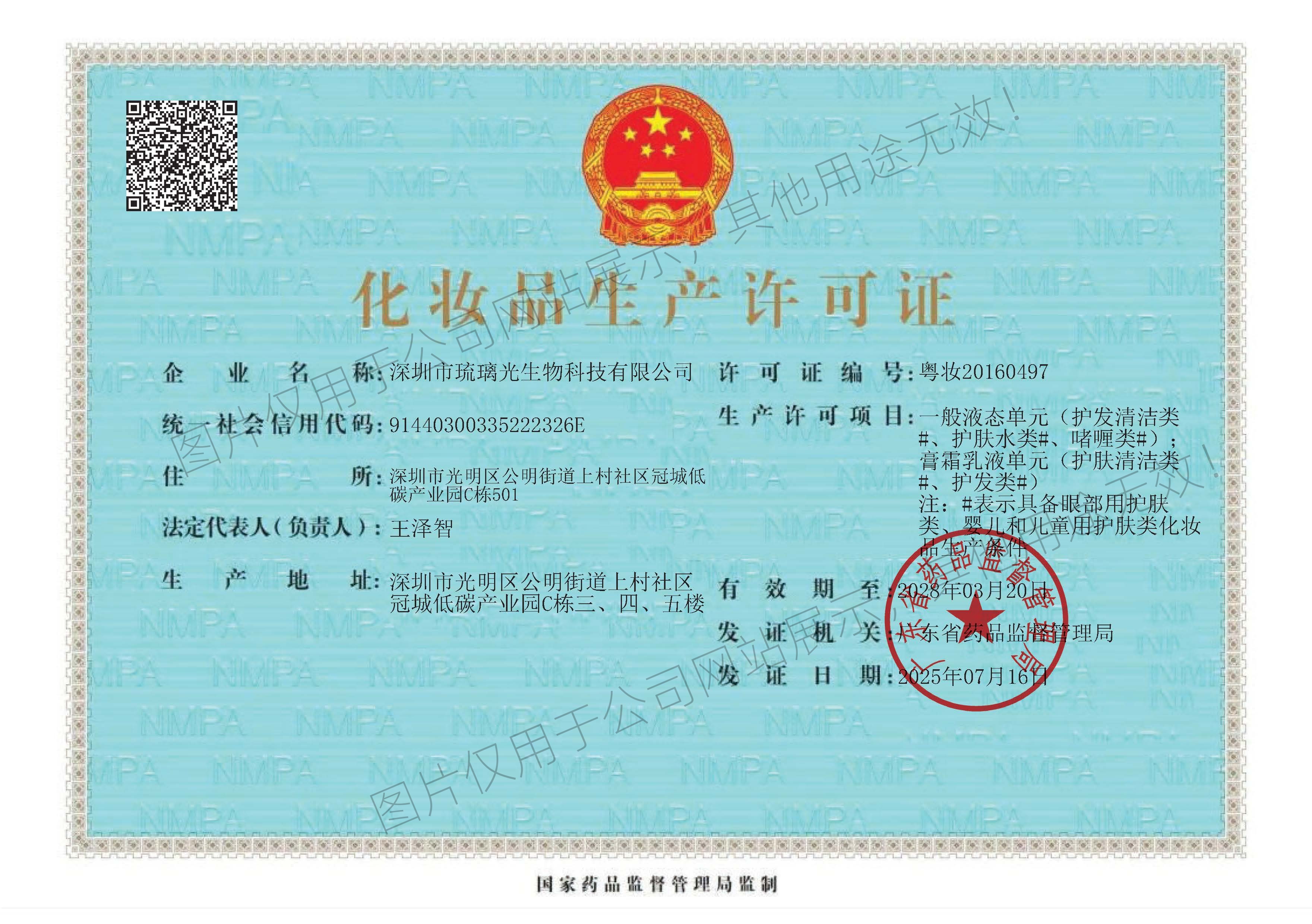 • 化妝品生產許可證正本