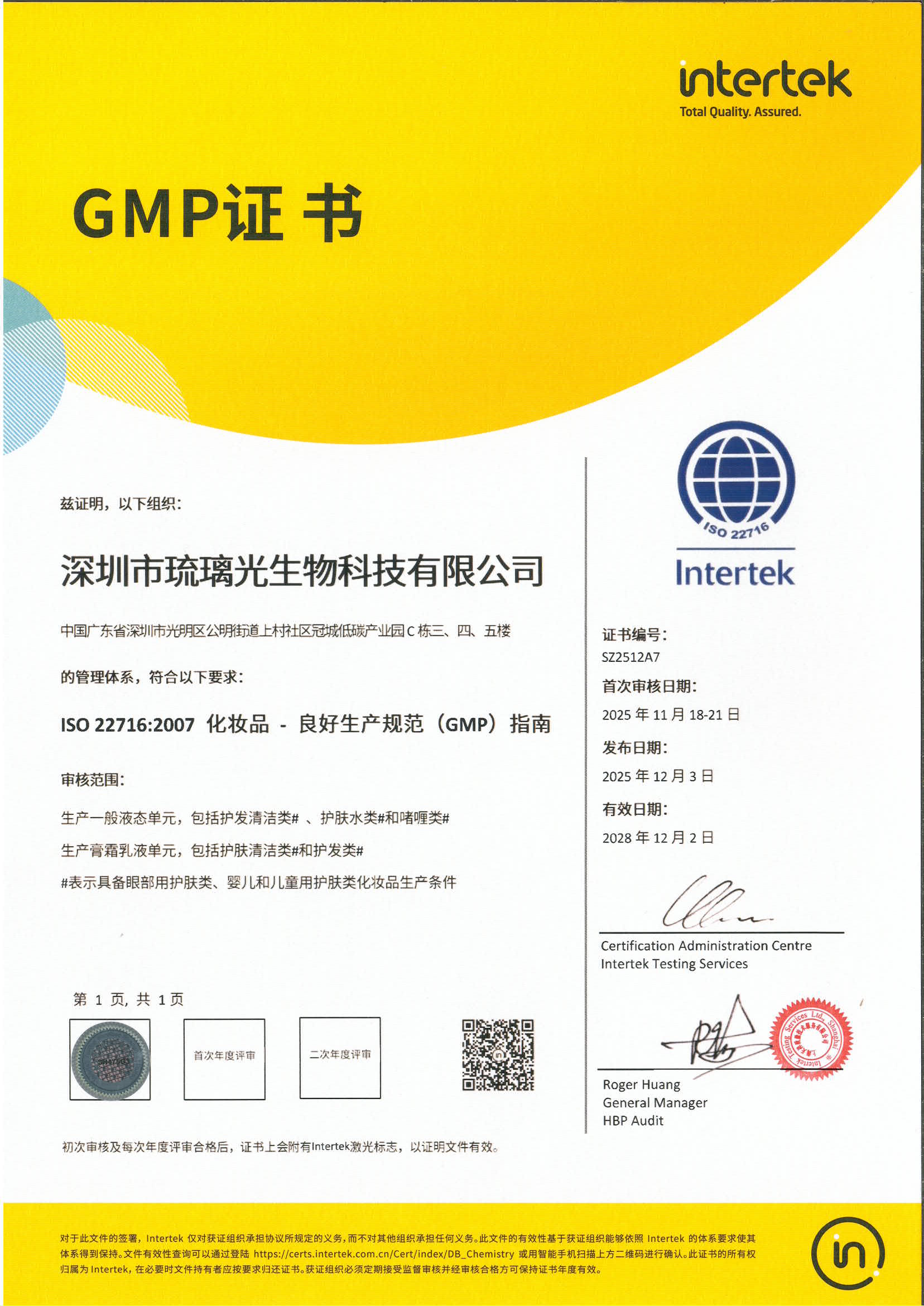 • 琉璃光GMP證書_ISO22716英文證書